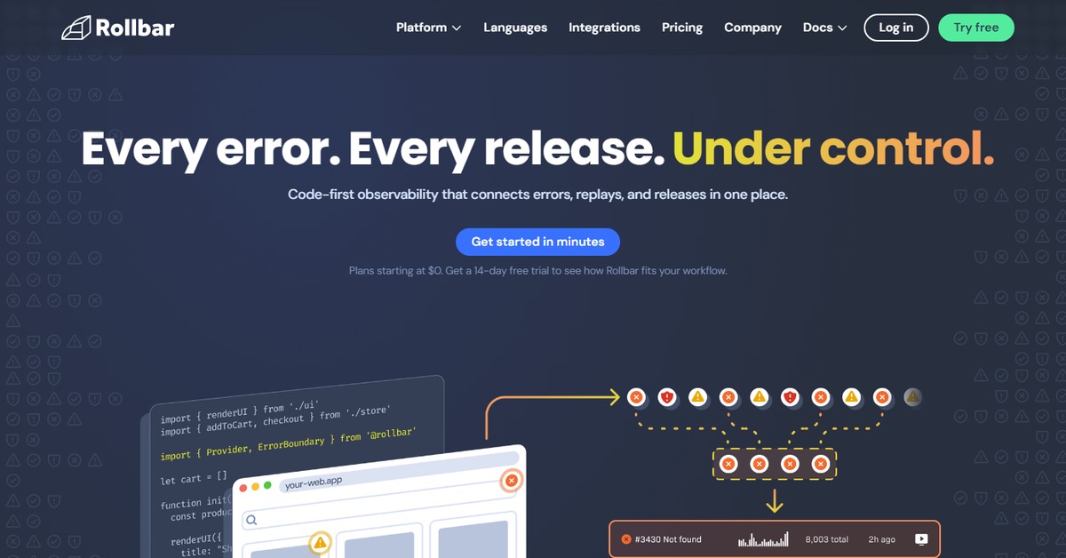 Rollbar can monitor web applications, mobile apps, and server-side applications across various programming languages.