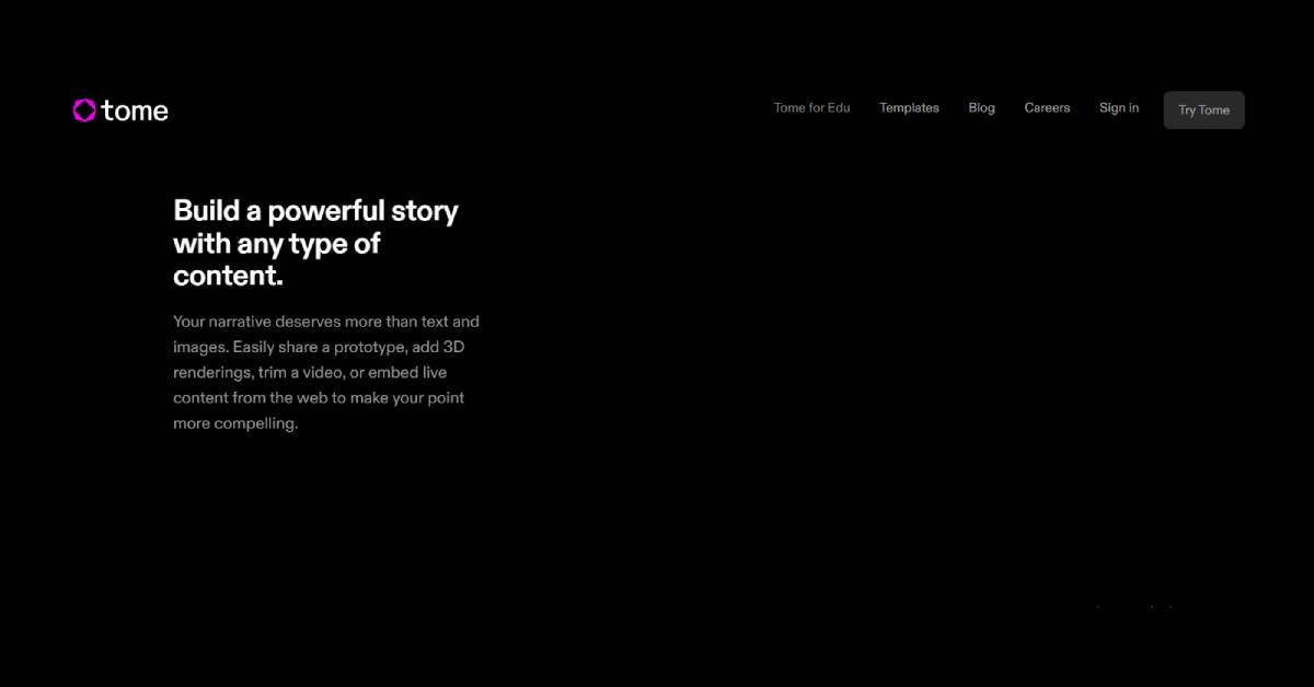 Tome is an innovative AI-powered content creation tool that revolutionizes the way individuals and teams approach writing. By leveraging advanced algorithms, Tome assists users in generating high-quality content quickly and efficiently. This tool is particularly valuable for content creators, marketers, and businesses looking to enhance their writing capabilities without sacrificing quality. With its unique features, such as real-time collaboration and intelligent suggestions, Tome addresses common challenges in content creation, including writer’s block and time constraints. Its user-friendly interface and practical applications make it an essential tool for anyone aiming to produce compelling written material. Whether you’re drafting blog posts, reports, or marketing copy, Tome provides the necessary support to elevate your writing process and achieve your content goals.